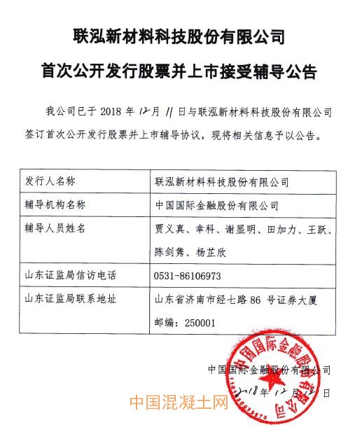 近日,中國證券監(jiān)督管理委員會(huì)山東監(jiān)管局發(fā)布聯(lián)泓新材料科技股份有限公司首次公開發(fā)行股票并上市接受輔導(dǎo)公告。