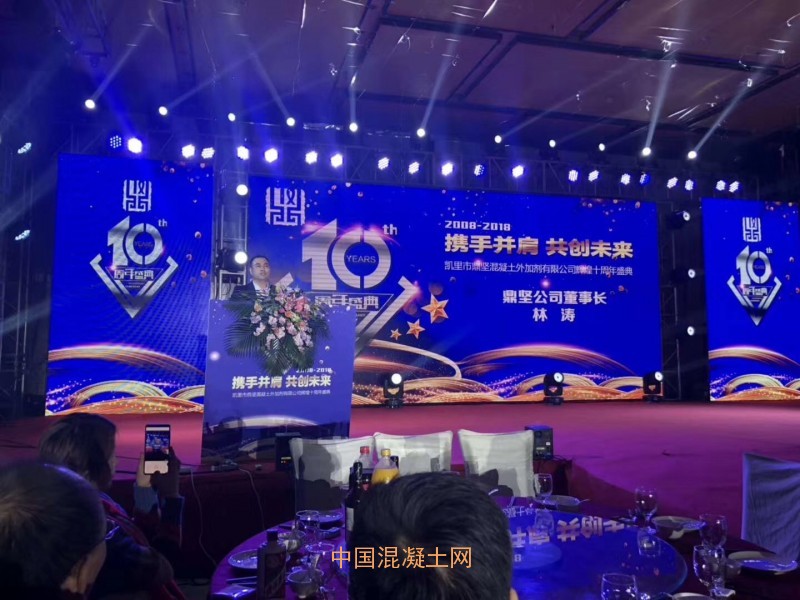 1月8日,凱里市鼎堅混凝土外加劑有限公司成立10周年慶典在凱里盛大舉行,慶典期間還召開了2019貴州省黔東南州智庫招商推介會,此次推介會由貴州省投資促進局、省社科聯聯合主辦,州投資促進局、州社科聯、凱里鼎堅混凝土外加劑有限公司共同承辦。