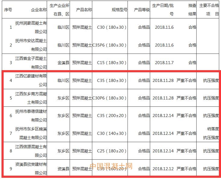 2月21日,江西省撫州市市場監督管理局官網通報2018年第二批預拌混凝土產品質量市級監督專項抽查情況。通報稱,按照市領導關于加強“商砼”企業產品質量監管的批示要求,市市場監督管理局對預拌混凝土產品質量開展了第二批市級監督專項抽查。現將抽查情況通報如下: