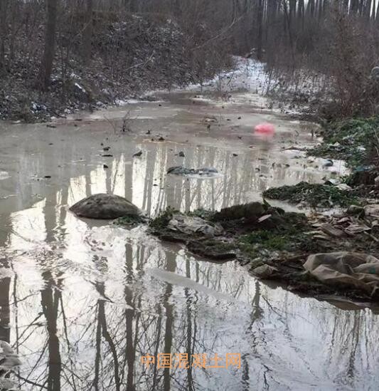 上蔡縣鑫隆砼業有限公司附近的河流內,由于長期排放污水沉淀下來的很厚污泥