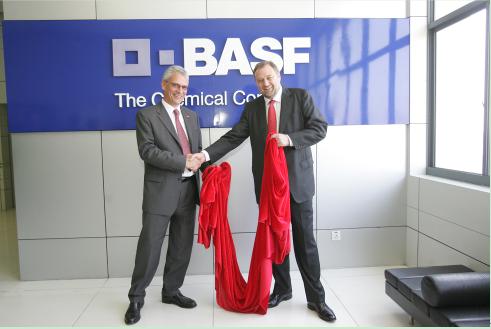2009年4月17日,巴斯夫亞太區(qū)總裁賀博科博士與汽巴亞太區(qū)總裁柯龍共同在汽巴上海漕河涇基地為巴斯夫標識揭牌。