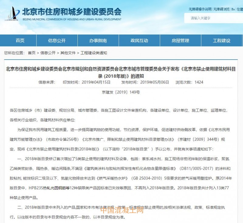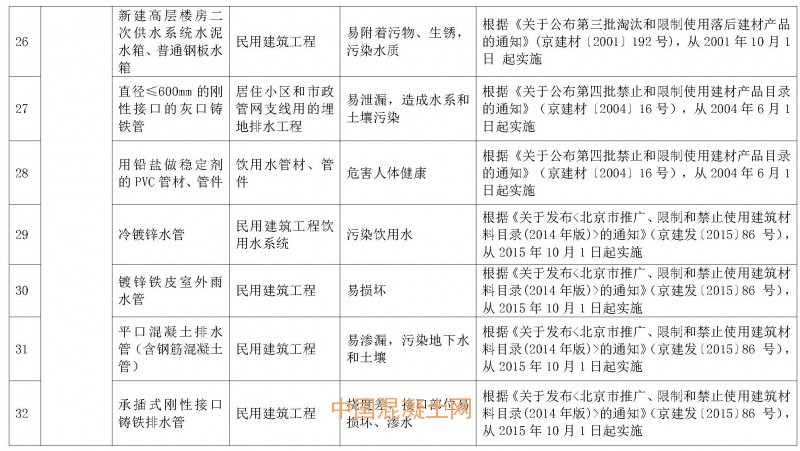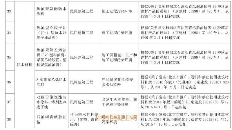 因生產工藝,質量控制,安全防護,儲運、使用過程,污染環境等原因,北京新增萘系減水劑等5種禁止使用建筑材料。