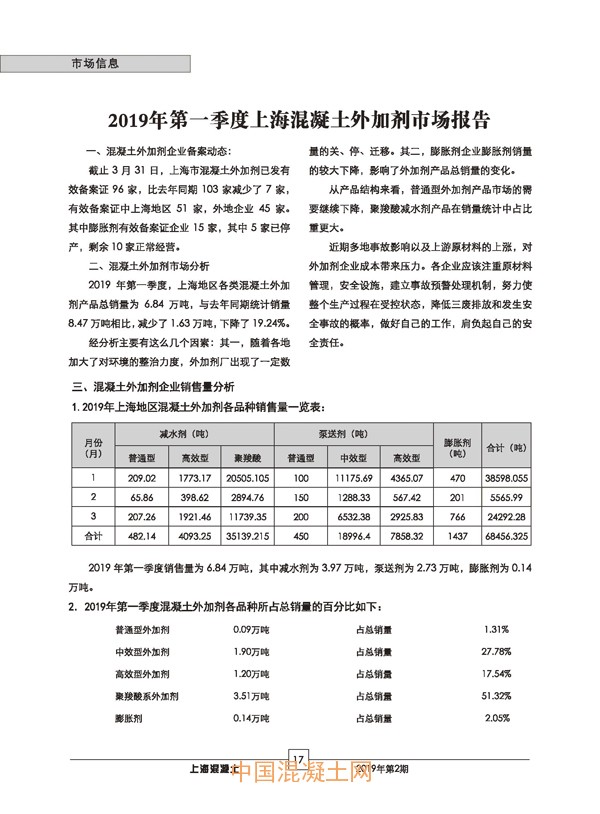 2019年第一季度上海混凝土外加劑市場報(bào)告