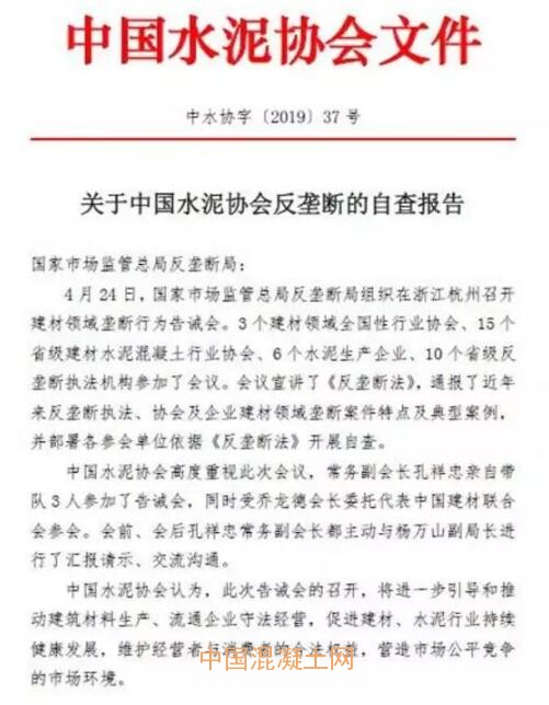 5月14日,中國(guó)水泥協(xié)會(huì)秘書長(zhǎng)張建新對(duì)媒體表示:會(huì)后,協(xié)會(huì)上下聯(lián)系自身的工作實(shí)際,進(jìn)行認(rèn)真自查,著重對(duì)2016年以來(lái),協(xié)會(huì)及協(xié)會(huì)下屬部門、分支機(jī)構(gòu)召開市場(chǎng)方面的會(huì)議、發(fā)布有關(guān)文件、規(guī)定和辦法等方面進(jìn)行自查,沒(méi)有發(fā)現(xiàn)有嚴(yán)重的違反《反壟斷法》行為的會(huì)議與文件。