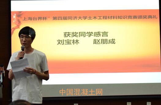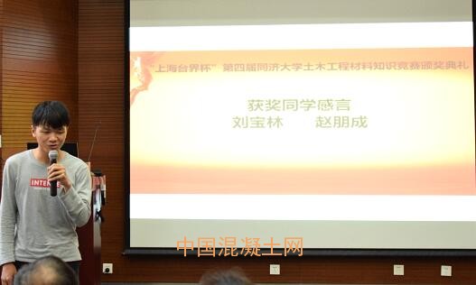 一等獎(jiǎng)獲得者劉寶林和趙朋成兩位同學(xué)分別發(fā)表了獲獎(jiǎng)感言。他們均對(duì)競(jìng)賽主辦方和協(xié)辦方表示由衷感謝,認(rèn)為土木工程材料系倡議發(fā)起的土木工程材料知識(shí)競(jìng)賽,對(duì)于在讀大學(xué)生們來(lái)說(shuō),是每年熱切期待的一項(xiàng)賽事,可以幫助同學(xué)們找到努力的方向,了解并深入學(xué)習(xí)一門(mén)專(zhuān)業(yè)知識(shí)并進(jìn)行認(rèn)真思考。趙朋成同學(xué)說(shuō):“參加這次比賽,有助于我們夯實(shí)專(zhuān)業(yè)基礎(chǔ),建立完善的知識(shí)體系,使我們?cè)诿媾R實(shí)際問(wèn)題并想方設(shè)法解決問(wèn)題的過(guò)程中加深對(duì)土木工程材料的認(rèn)識(shí)。因此我特別感謝主辦方和贊助方!”他還說(shuō):“當(dāng)代青年要有激情和力量。一代人有一代人的使命,一代人有一代人的擔(dān)當(dāng)。中華民族站起來(lái)的近代史,是用血淚書(shū)寫(xiě)的斗爭(zhēng)史;中華民族富起來(lái)的現(xiàn)代史,是用汗水書(shū)寫(xiě)的奮斗史。而我們這一代的使命是讓我們的民族強(qiáng)起來(lái),我想,我們的歷史是用智慧書(shū)寫(xiě)的歷史,因?yàn)檫@個(gè)時(shí)代的命門(mén)是科技。而不論在哪個(gè)歷史時(shí)期,學(xué)生時(shí)代總是最富有激情、最富有創(chuàng)造力的時(shí)期。恰同學(xué)少年,風(fēng)華正茂,望吾輩能求真學(xué)問(wèn),練真本領(lǐng),心中有陽(yáng)光,腳下有力量。”