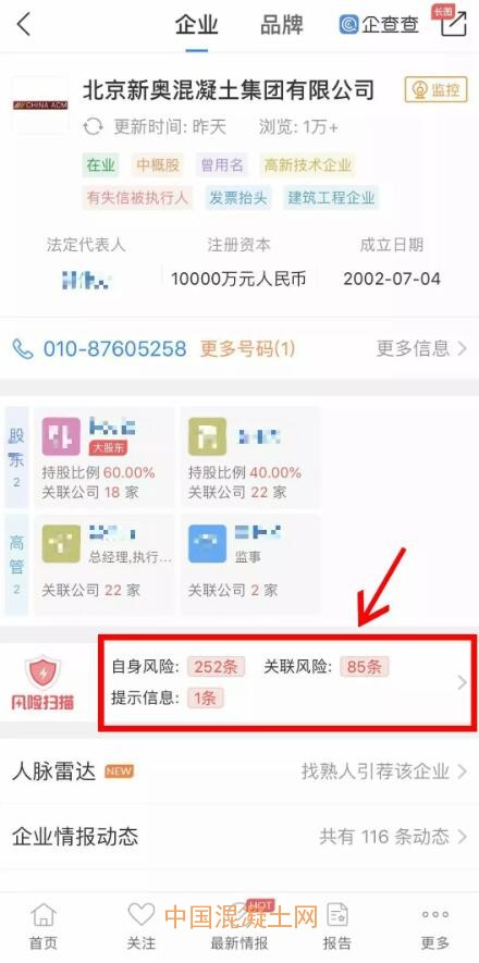 過去的一切看起來風光無限,然而小編查到,新奧混凝土集團自身風險有252條,關聯風險由85條。