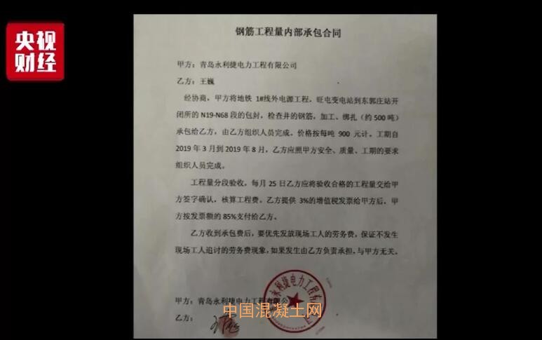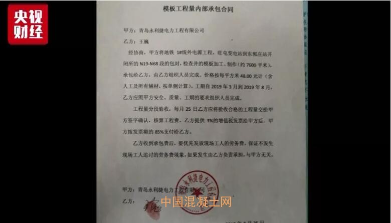 至于永利捷與下游企業繼續進行分包的事宜,記者也獲得了一份永利捷公司與下游公司簽訂的合同。而法律專家表示,從永利捷公司往下的一系列轉包分包行為均涉嫌違法。