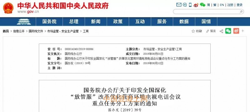 黨中央、國務院高度重視深化“放管服”改革、優化營商環境工作。2019年6月25日,李克強總理在全國深化“放管服”改革優化營商環境電視電話會議上發表重要講話,部署深化“放管服”改革,加快打造市場化法治化國際化營商環境。為確保會議確定的重點任務落到實處,現制定如下分工方案。