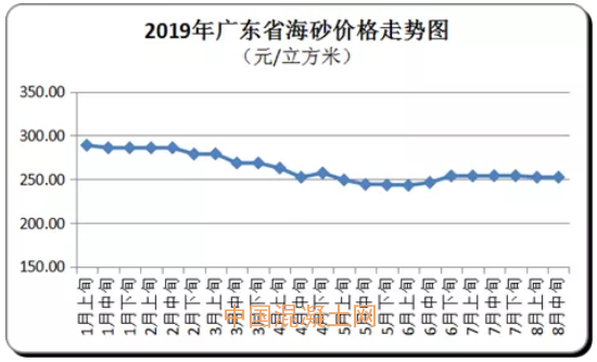 8月中旬廣東省海砂(淡化處理)平均購進價為每立方米252元,價格維持不變。其中,粵北和珠三角地區購進價分別為每立方米225元和272元。