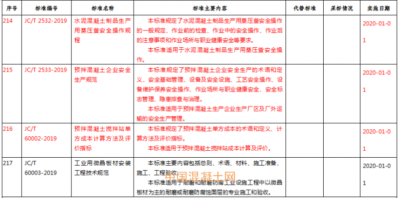 標準編號為JC/T 2533-2019的預拌混凝土企業安全生產規范;