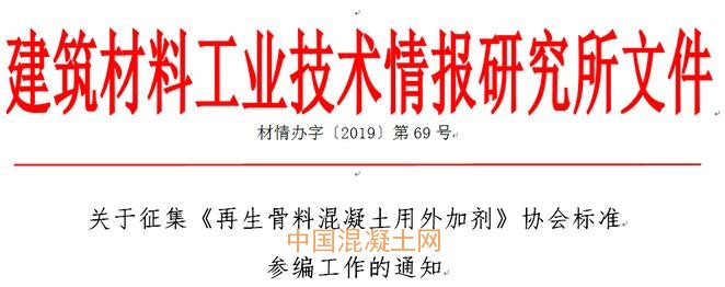 根據中國建筑材料聯合會“關于下達2019年第四批協會標準制定計劃的通知”,由建筑材料工業技術情報研究所負責組織《再生骨料混凝土用外加劑》(中建材聯標發〔2019〕106號,計劃號:2019-46-xbjh)協會標準的編制工作,起止時間為2019年10月至2020年10月。