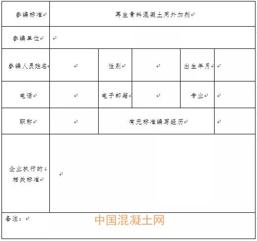 為使制定標準的內容更加科學,具有廣泛的適用性和代表性,保證標準的按時完成,將由建筑材料工業技術情報研究所和中國散裝水泥推廣發展協會混凝土專業委員會負責組織成立“標準起草組”,現向全國征集參編單位,參編單位包括:混凝土外加劑相關原材料生產單位、混凝土外加劑企業、實驗儀器設備制造商、施工單位、管理單位、科研院所、設計、質檢等單位。意向參編單位請填寫回執(見附件),加蓋公章后寄回。