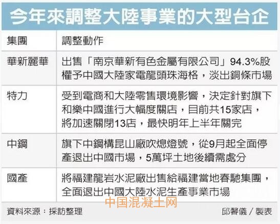 臺灣島內(nèi)預拌混凝土龍頭國產(chǎn)實業(yè)14日宣布,將福建龍巖水泥廠以人民幣4.08億元(約新臺幣17.9億元)出售給福建當?shù)卮厚Y集團,外界解讀國產(chǎn)實業(yè)退出大陸水泥生產(chǎn)市場;國產(chǎn)表示,回收資金將朝瘦身或建材通路相關事業(yè)進行并購發(fā)展。