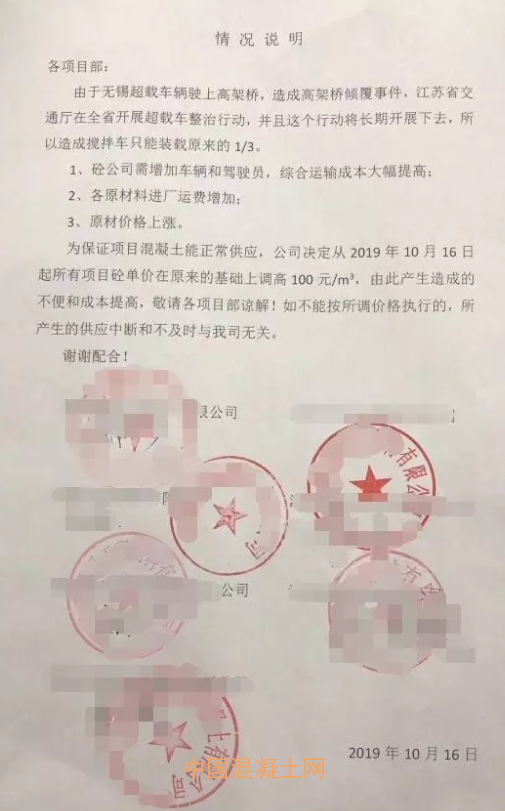 為保證混凝土正常供應,當地砼企只能被迫將砼價在原來基礎上上調100元/方!