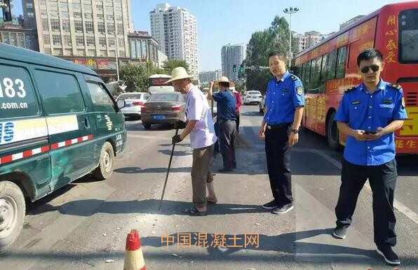 10月22日,該局機動中隊聯合交警部門責令混凝土運輸企業,清理路面上存在的“滴撒漏”后已固化的水泥砂漿,現已全部清理到位。(區城管執法局)