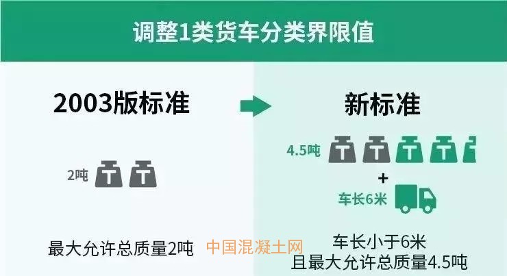 新的車型劃分標準中,將1類和2類貨車分類界限值,確定為車長小于6米且允許總質量4.5噸。