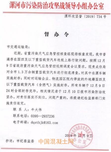 據了解,漯河市交通運輸局收到督辦令,對全市1.3萬余輛重型載貨汽車進行清查,對在漯車輛實施封存;同時對運輸企業,物流園區院內停放的外地籍國四及以下重型載貨汽車(含燃氣)實施封存。