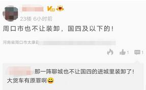 除此之外,還有網友提到,周口市也不讓國四及以下的貨車裝卸。