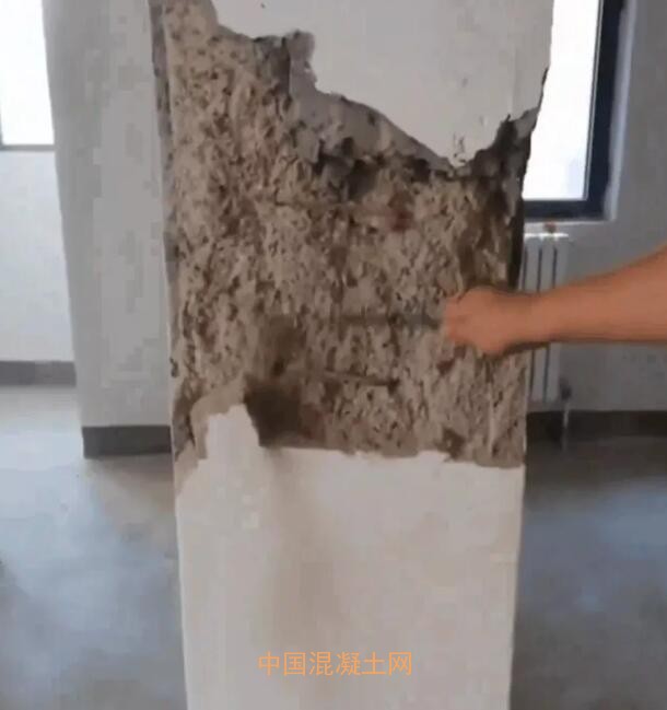 近日,鄭州市金水區小賀莊村民反映稱,該村安置房內的一個柱子輕輕一敲,“混凝土”便會掉落。村民們拍攝的視頻顯示,一混凝土柱子被人一撥,混凝土便破碎掉落。
