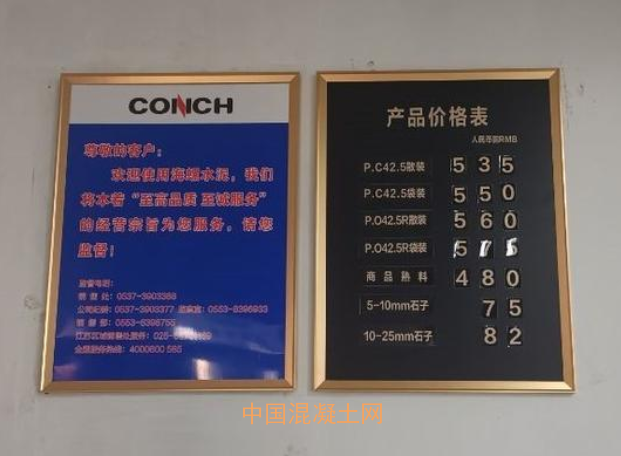 濟寧海螺廠區內懸掛的產品價格表