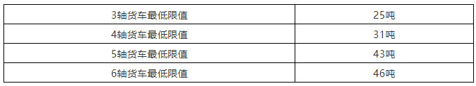 根據公路貨運車超限載認定標準(GB1589-2016)的規定,按同一軸數限定的最小值作為最大允許總質量限值,作為判定該車是否超限超載的依據。