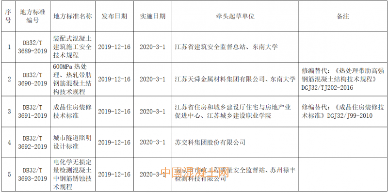 近日,DB32/T 3689-2019《裝配式混凝土建筑施工安全技術規程》等21項江蘇省地方標準發布。