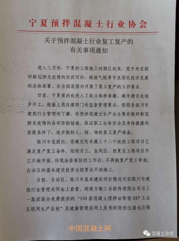寧夏混凝土協會關于復工復產的有關事項通知