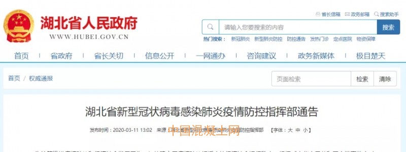 3月11日,湖北省人民政府發布了“湖北省新型冠狀病毒感染肺炎疫情防控指揮部通告”。