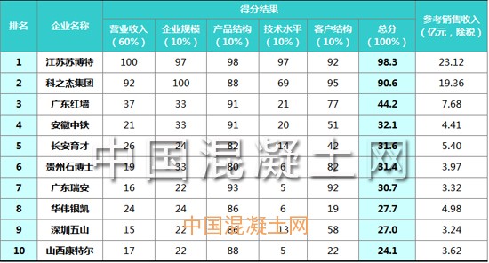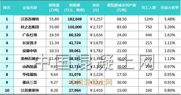 注:以2018年各企業實際銷售額為依據,經過對各項數據的權重比較得出最終排名。(聚羧酸減水劑銷量以20%濃度計算)
