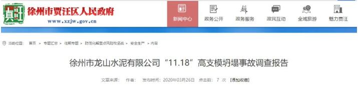 日前,江蘇省徐州市賈汪區人民政府發布了《徐州市龍山水泥有限公司”11.18“高支模坍塌事故》調查結果。其結果發現涉及多項違規。
