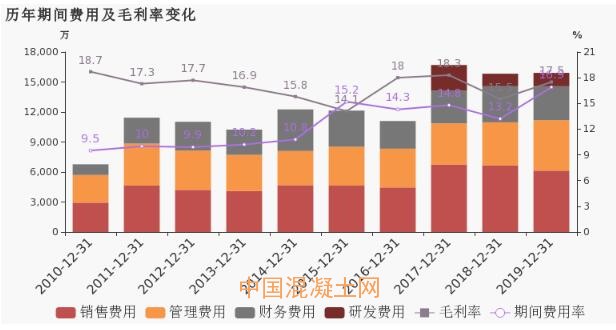 公司2019年營業成本7.8億,同比下降22.9%,高于營業收入21%的下降速度,毛利率上升2%。期間費用率為16.9%,較上年升高3.6%,對公司業績形成拖累。