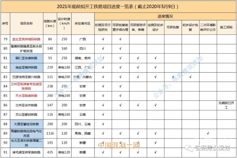 1、紅色字體為本次更新內容,藍色部分為2020年國鐵集團儲備開工項目;