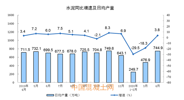 根據國家統計局數據顯示,2020年1-4月份,全國累計水泥產量5.21億噸,同比下降14.4%;4月份,全國單月水泥產量2.23億噸,同比增長3.8%。