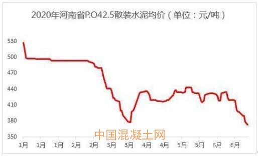 截止到6月30日,河南省混凝土C30均價為449元/方,較2020年初下跌86元/方。