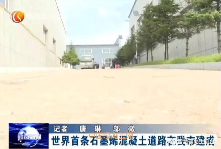 記者唐琳:在我身后,工人們正在鋪設的是世界首條石墨烯混凝土路面,跟普通的路面相比,石墨烯混凝土路面它的抗壓性和抗滲性都要更強一些,我們普通的混凝土路面鋪設之后,需要一天左右的時間才能使用,而這條石墨烯混凝土路面只需要兩個小時就能投入使用了。而在我身邊剛剛鋪設完的來看,路面已經逐漸泛白,出現干爽的情況。