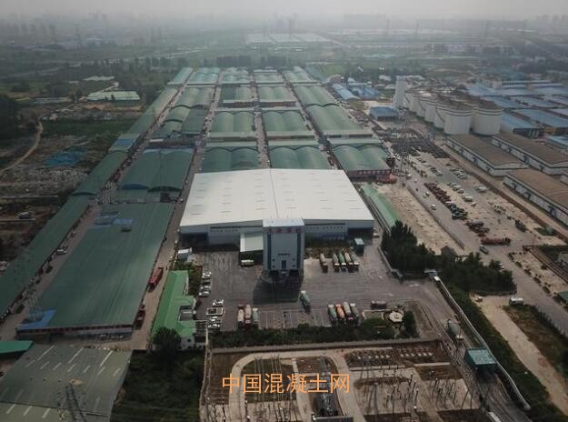 記者在現(xiàn)場通過航拍圖觀察,該商砼占地面積頗大,僅院內(nèi)西側(cè)院墻下,就劃有14個供大型水泥罐車停靠的停車位,商砼整體呈“U”字型內(nèi)嵌于其背后的一座建材批發(fā)市場當中。