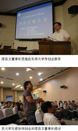 一個半小時的報告后,繆昌文董事長還回答了一些學(xué)生的提問,從專業(yè)知識解答到創(chuàng)業(yè)經(jīng)歷體會,從為人處事方法到就業(yè)方向選擇,繆昌文學(xué)長現(xiàn)身說法,為即將走上社會的東大學(xué)子上了一堂內(nèi)容豐富的創(chuàng)業(yè)預(yù)備課。