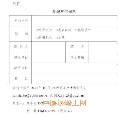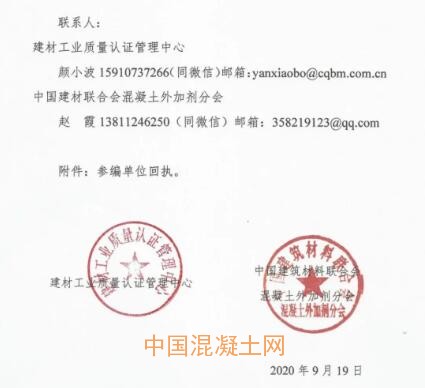 為落實工信部《綠色制造工程實施指南(2016-2020年)》,加快推進混凝土外加劑行業綠色制造體系建設,中國建筑材料聯合會混凝土外加劑分會和建材工業質量認證管理中心主持制定行業標準《綠色設計產品評價技術規范混凝土外加劑》?,F征集參編單位,企業如有意參加標準編制工作,請填寫參編單位回執(見附件),并于2020年10月15日前發至編制組郵箱。