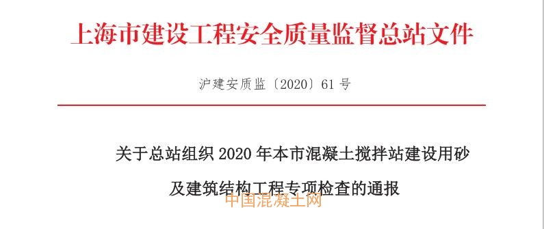上海市安質監總站于2020年7月至9月在全市范圍內開展混凝土攪拌站建設用砂及建筑結構工程專項檢查。