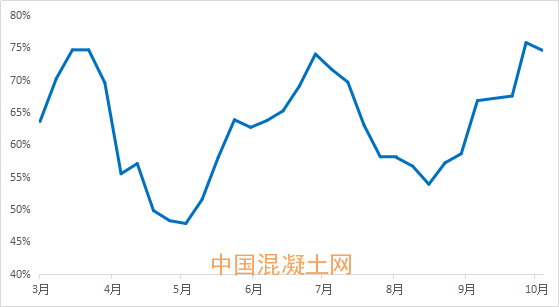 9月湖南省平均水泥熟料運(yùn)轉(zhuǎn)率79%,10月中旬,因湖南省發(fā)布大氣污染防治特護(hù)期水泥熟料錯(cuò)峰生產(chǎn)工作通知,大部分水泥窯線自10月16日起開始停窯,截止10月23日,湖南省水泥熟料運(yùn)轉(zhuǎn)率陡然下降至50%。