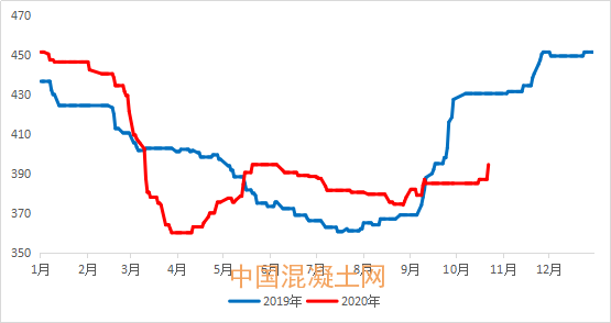 2019年是最典型的“金九銀十”,從9月開始完美上演四次價(jià)格上漲,但今年9月中旬后,10月末才開始第二輪水泥價(jià)格上漲。