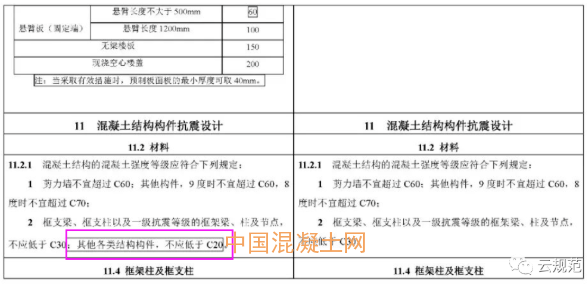 10:抗震設計中去掉對其他各類構件不低于C20的規定