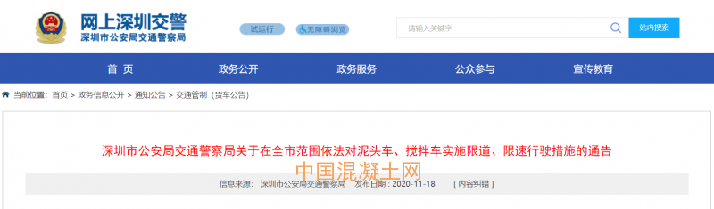 11月18日,深圳市公安局交通警察局發布《關于在全市范圍依法對泥頭車、攪拌車實施限道、限速行駛措施的通告》。通告指出,為進一步加強泥頭車、攪拌車管理,有效遏制交通事故發生,規范行駛秩序,深圳市公安局交通警察局就限定泥頭車、攪拌車行駛車道及速度相關事項進行通告。通告如下: