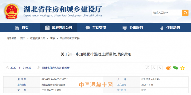 為貫徹落實《國務院辦公廳轉發住房城鄉建設部關于完善質量保障體系提升建筑工程品質指導意見的通知》(國辦函〔2019〕92號)要求,嚴格預拌混凝土生產使用環節質量控制,強化企業主體責任和部門監管責任,保障房屋市政工程質量安全,現就進一步加強預拌混凝土質量管理的有關事項通知如下:
