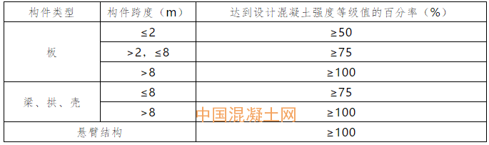 2、底模及支架應在混凝土強度達到設計要求后拆除。當設計無具體要求時,同條件養護混凝土試件強度應符合以下要求: