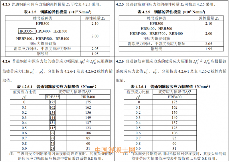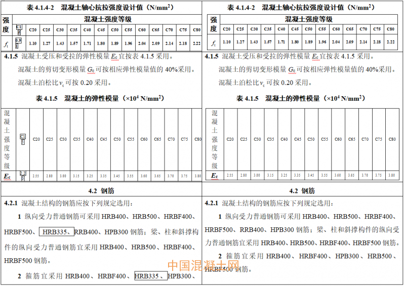2015版局部修訂中,刪除了HRBF335鋼筋牌號,取消了原表注,正文中的“應”改為“可”。本次局部修訂,刪除了HRB335鋼筋牌號。