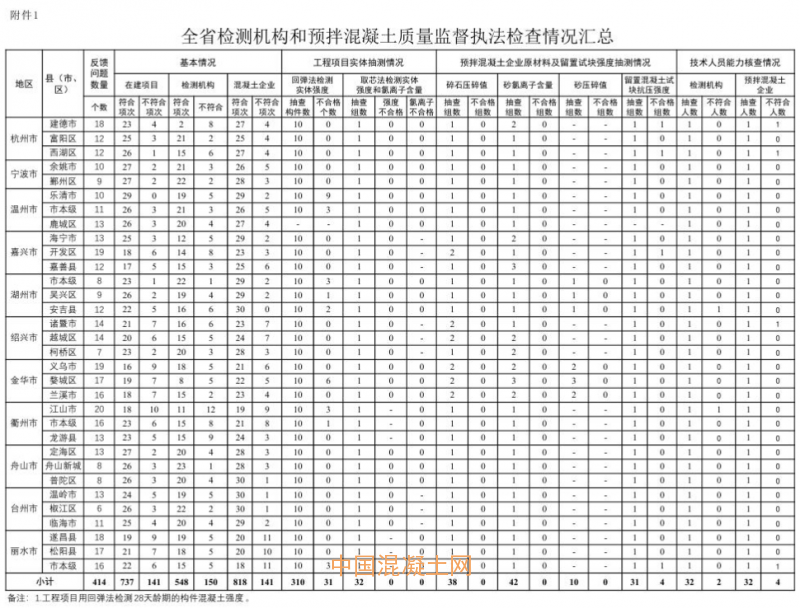 1.全省檢測(cè)機(jī)構(gòu)和預(yù)拌混凝土質(zhì)量監(jiān)督執(zhí)法檢查情況匯總