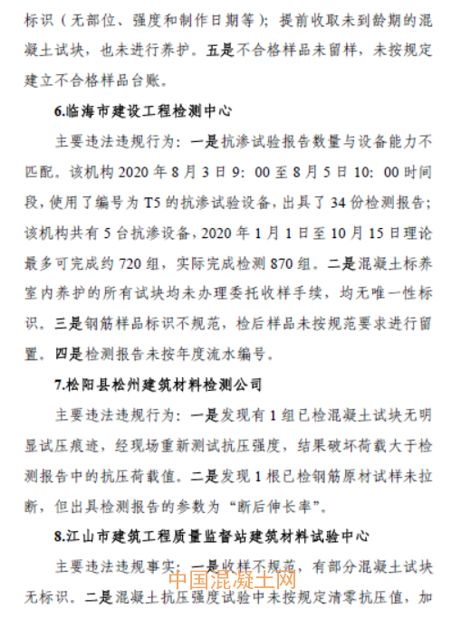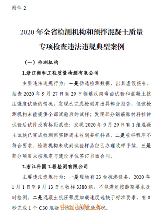 2.2020年全省檢測(cè)機(jī)構(gòu)和預(yù)拌混凝土質(zhì)量專項(xiàng)檢查違法違規(guī)典型案例