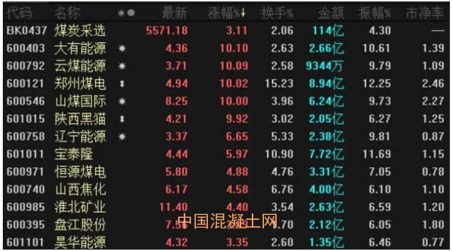 受商品市場帶動,當(dāng)日A股煤炭板塊領(lǐng)漲大盤。截至下午收盤,Wind中信一級煤炭指數(shù)報漲2.14%,大有能源、云煤能源、鄭州煤電等多股漲停。