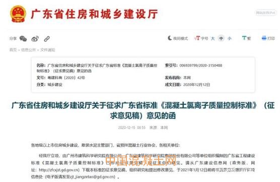 日前,廣東省住房和城鄉建設廳公開征求廣東省標準《混凝土氯離子質量控制標準》意見,該省海砂使用、氯離子標準將規范化。